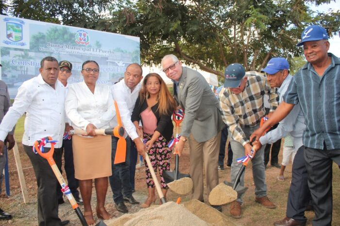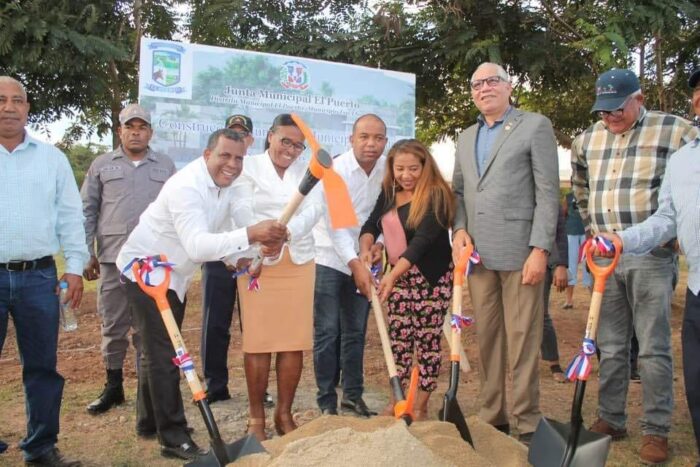 Juan Pacheco Mejía junto a su equipo de trabajo, lideres y autoridades efectúan el primer picazo para la construcción de la Funeraria Municipal que será una de las muchas obras que serán esenciales para el Distrito Municipal El Puerto y zonas aledañas.