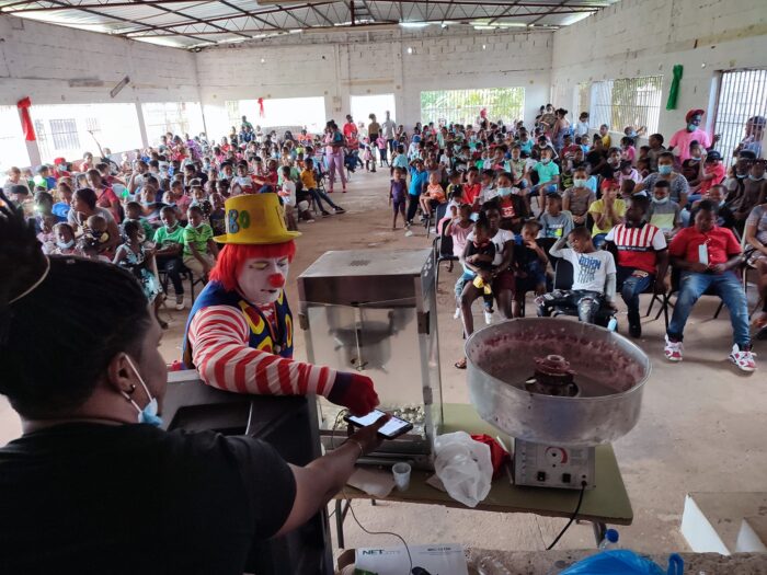 Nuestro director Juan Pacheco Mejía celebra el día de los niños de la mano del payaso bombón el cual estuvo realizando actos de magia, bailes y concursos para el deleite de la niñez porteña. Un día lleno de alegría y felicidad para todos los niños de este Distrito Municipal El Puerto.